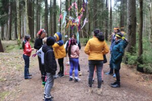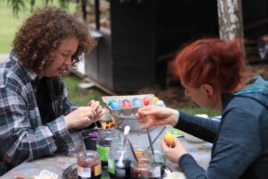Na Zelený čtvrtek jsme z přírodnin vyrobili a vynesli Moranu – bohyni smrti, na Velký pátek jsme zkusili divadelně ztvárnit části z života Ježíše, na Bílou sobotu jsme vyrazili na společný výlet, a ti odvážní z nás se cestou lehce smočili ve vodopádu. V neděli jsme barvili vajíčka, pletli pomlázky a napekli mazance a velikonoční beránky, nechyběla ani velikonoční nádivka.